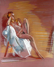 Dieses Gemälde gehört zu dem zweiteiligen Set „Scheidungs-Bilder“. Es zeigt die abgewiesene Ehefrau, die ihre Zukunft überdenkt. Von diesem Gemälde gibt es auch eine kleinere, preisgünstige Pastellversion.